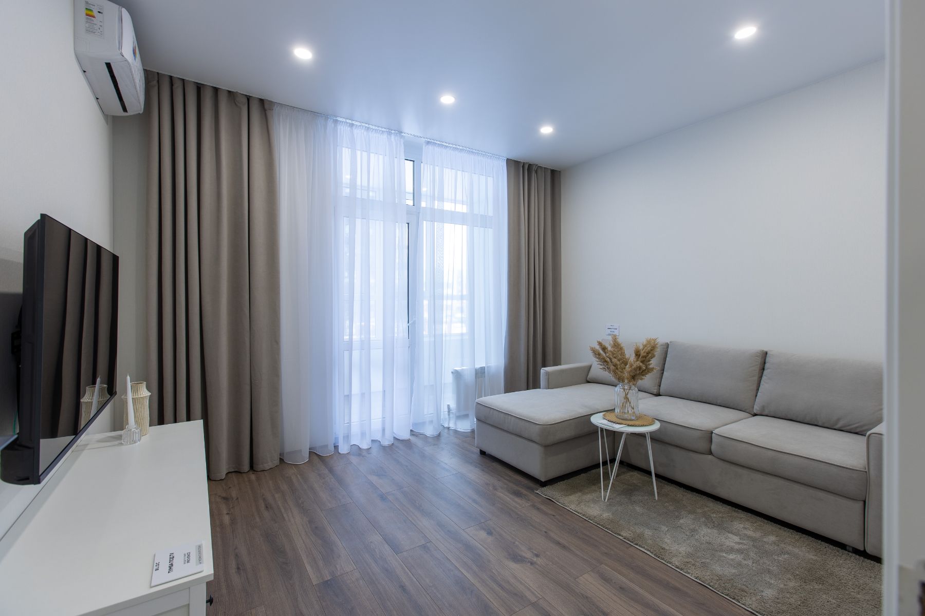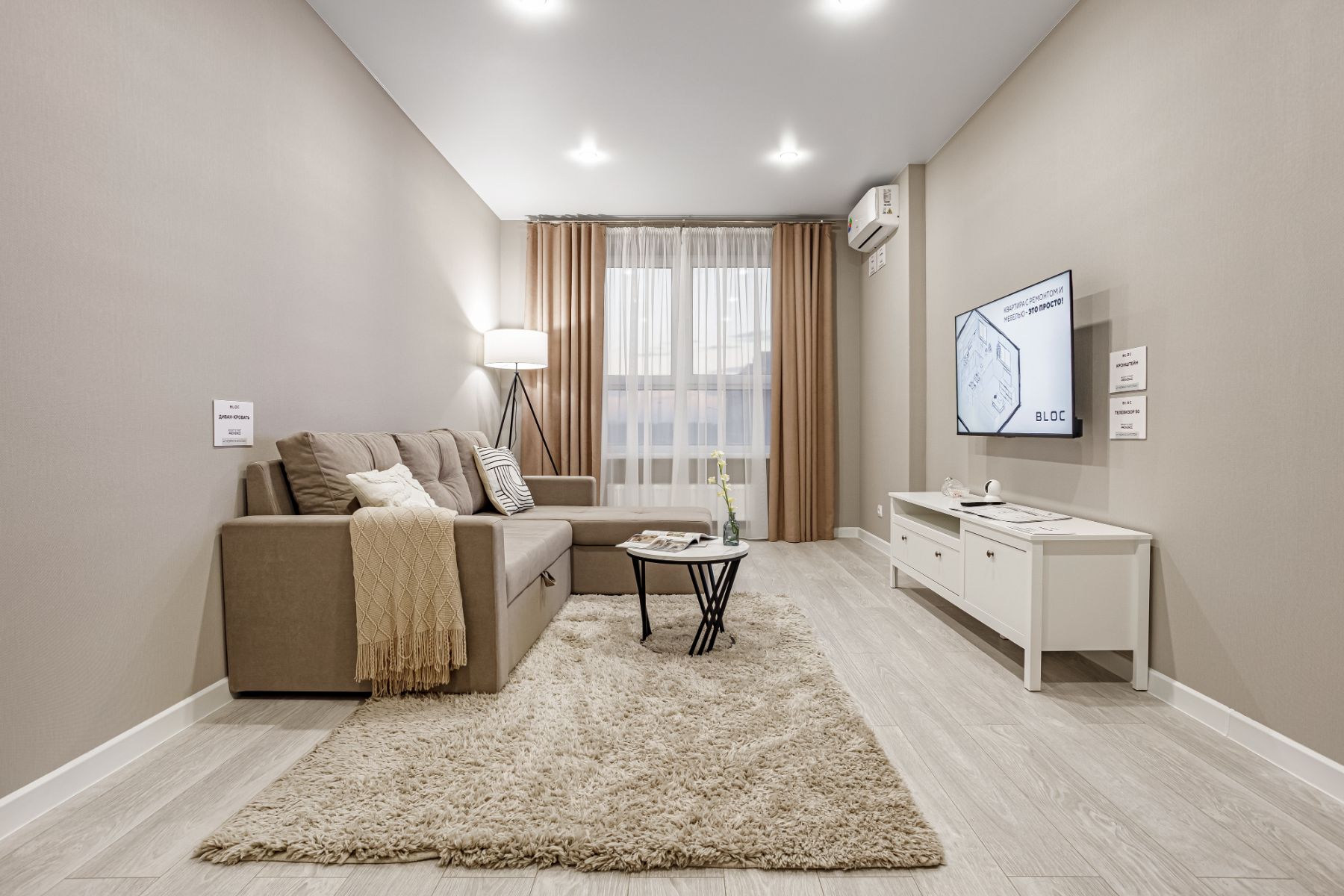 В пакет входит кухня, тюль, корпусная и мягкая мебель, сплит-системы и вся необходимая бытовая техника.