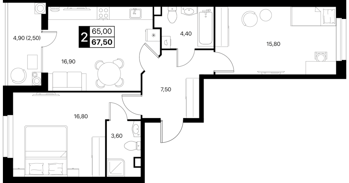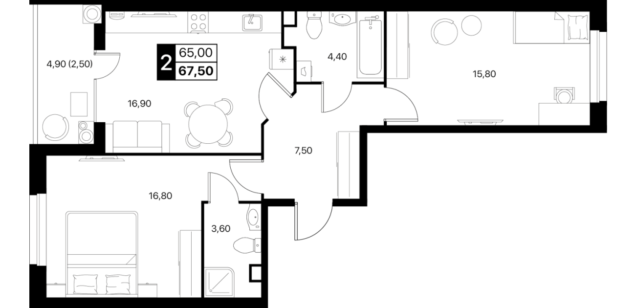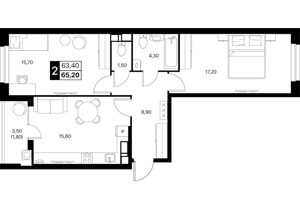 В пакет входит кухня, тюль, корпусная и мягкая мебель, сплит-системы и вся необходимая бытовая техника.