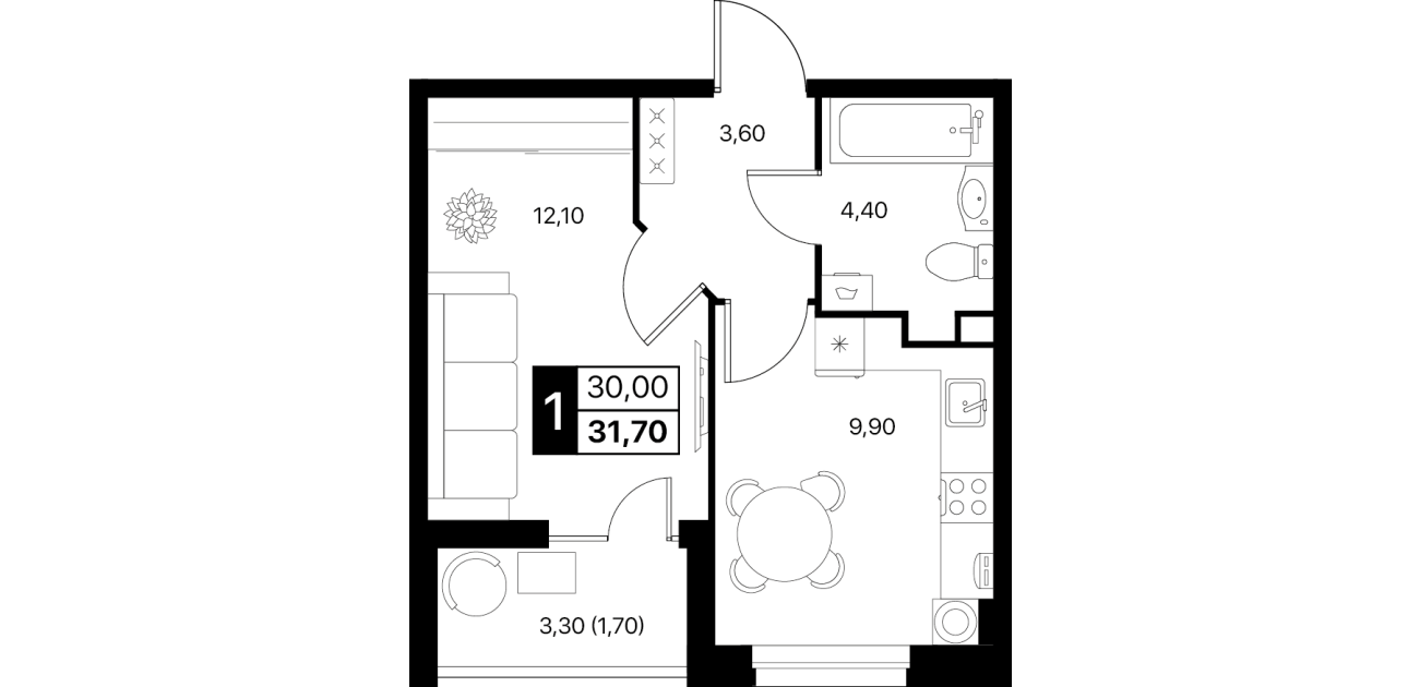В пакет входит кухня, тюль, корпусная и мягкая мебель, сплит-системы и вся необходимая бытовая техника.