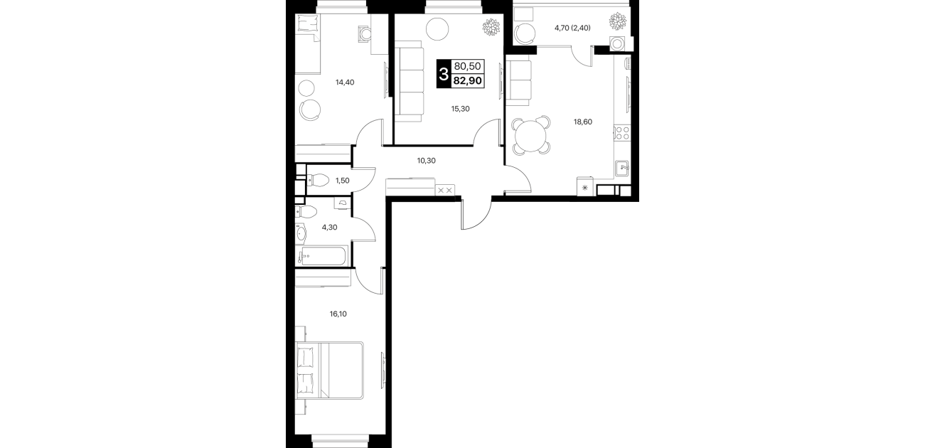 В пакет входит кухня, тюль, корпусная и мягкая мебель, сплит-системы и вся необходимая бытовая техника.