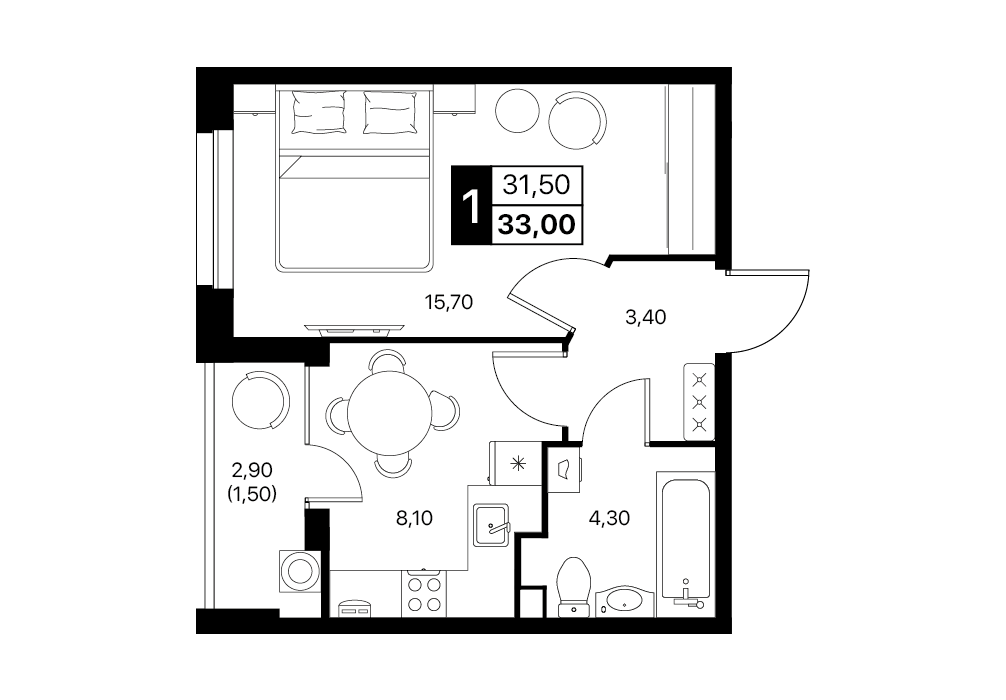 Чистый лист для вашего дизайна. Потолки покрашены, стены выровнены под обои, на полу аккуратный ковролин; электрика разведена, установлен базовый свет. Санузел собран (ванна, унитаз, раковина) — въезжайте и доводите интерьер без пыли и черновых работ.