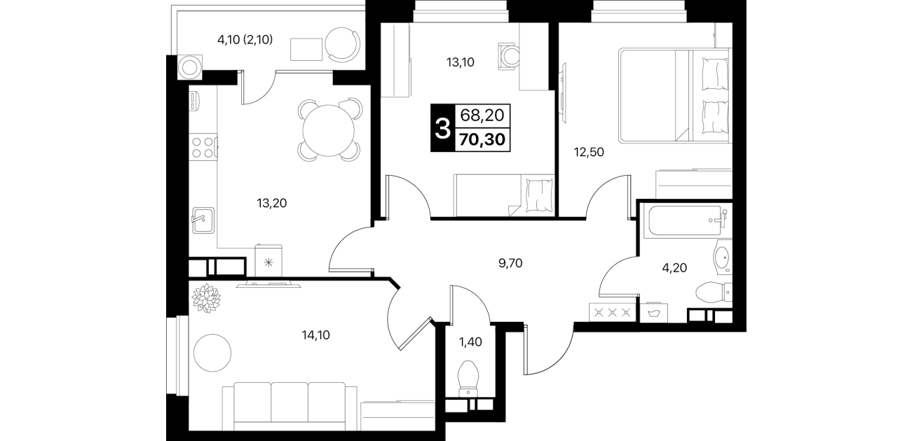 В пакет входит кухня, тюль, корпусная и мягкая мебель, сплит-системы и вся необходимая бытовая техника.
