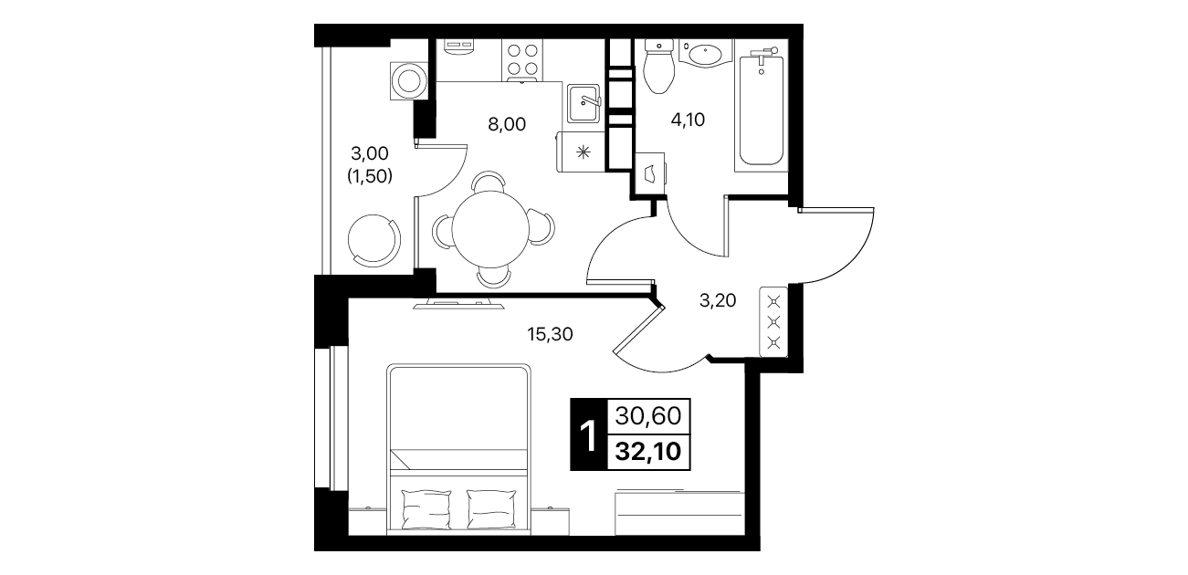 В пакет входит кухня, тюль, корпусная и мягкая мебель, сплит-системы и вся необходимая бытовая техника.