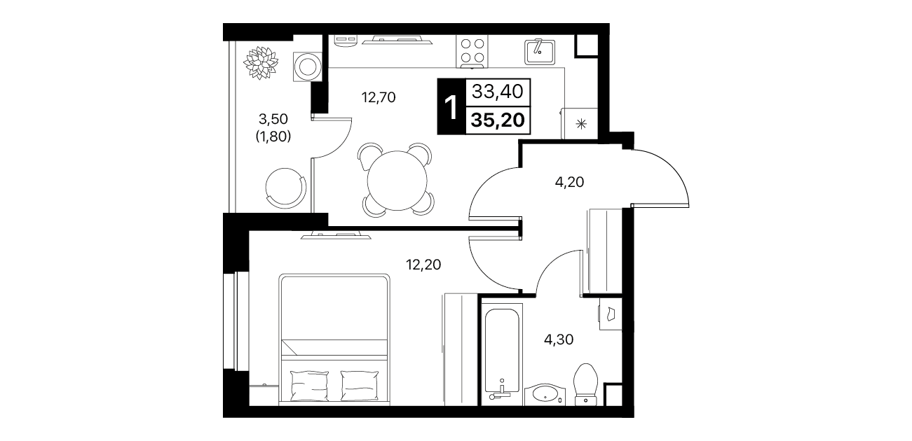 В пакет входит кухня, тюль, корпусная и мягкая мебель, сплит-системы и вся необходимая бытовая техника.