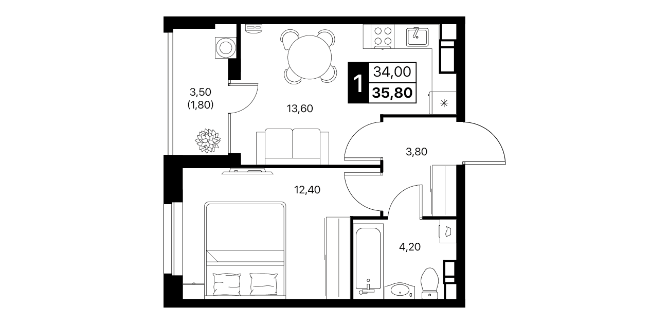В пакет входит кухня, тюль, корпусная и мягкая мебель, сплит-системы и вся необходимая бытовая техника.