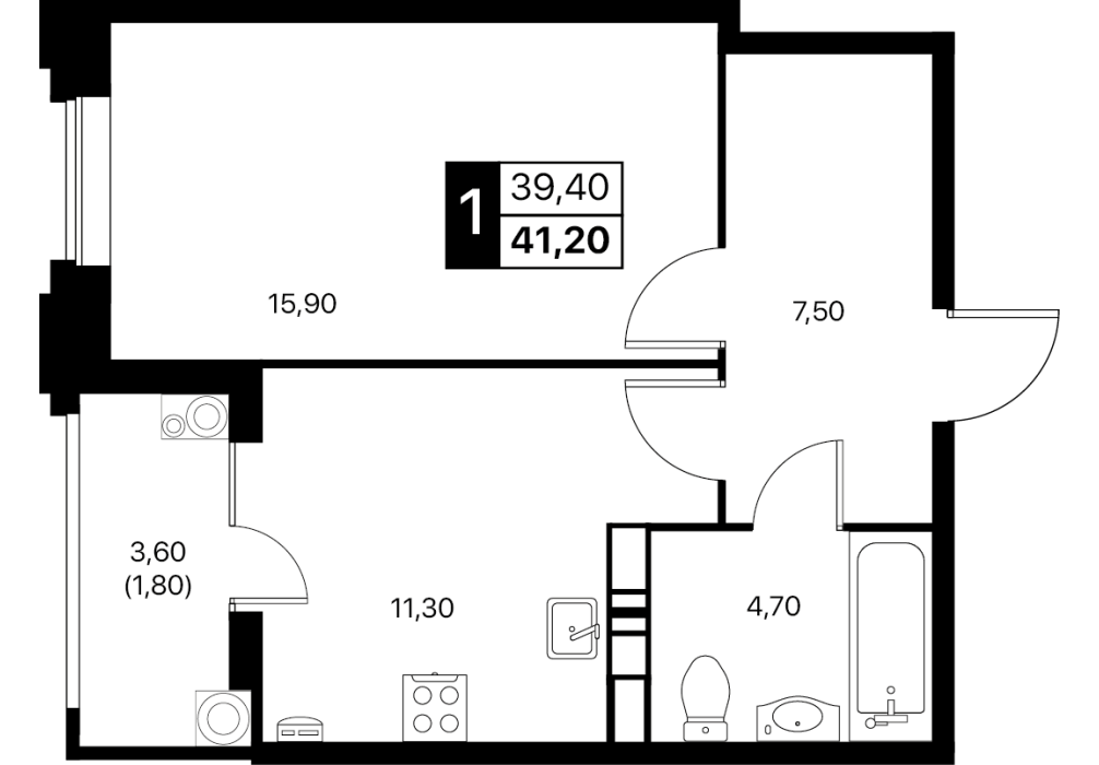 1-комнатная квартира: 41,2 м²