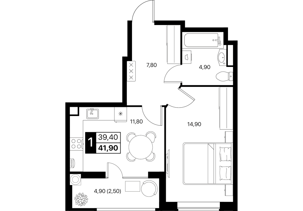 1-комнатная квартира: 32 м²