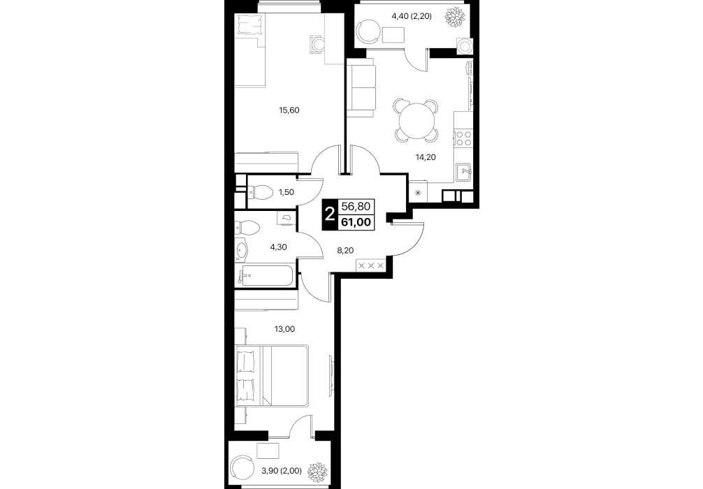 - Жилые комнаты