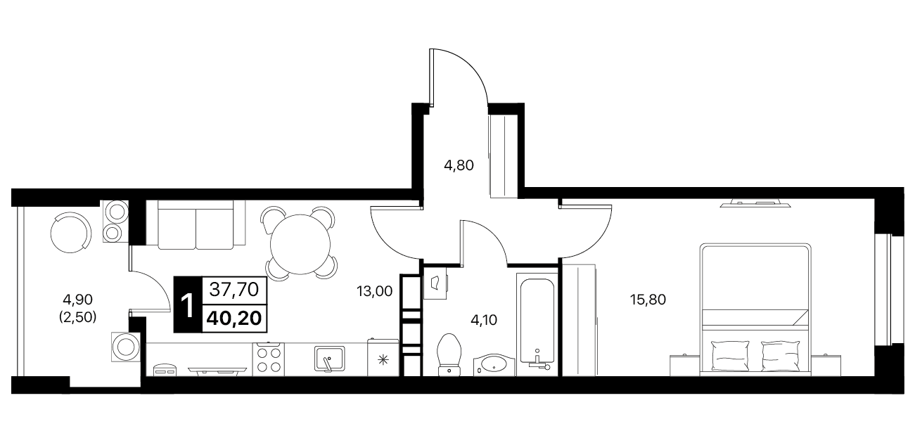 В пакет входит кухня, тюль, корпусная и мягкая мебель, сплит-системы и вся необходимая бытовая техника.