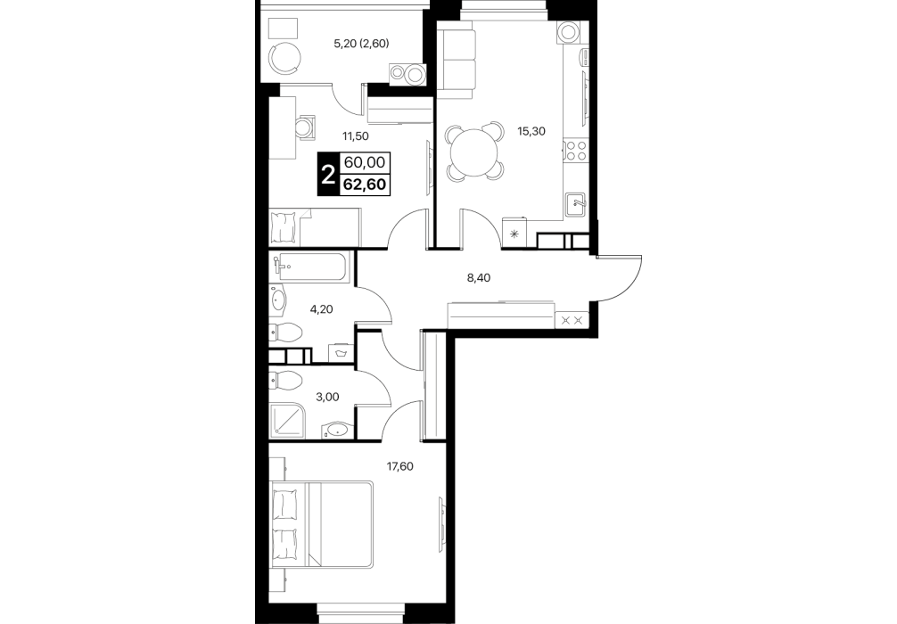 Чистый лист для вашего дизайна. Потолки покрашены, стены выровнены под обои, на полу аккуратный ковролин; электрика разведена, установлен базовый свет. Санузел собран (ванна, унитаз, раковина) — въезжайте и доводите интерьер без пыли и черновых работ.