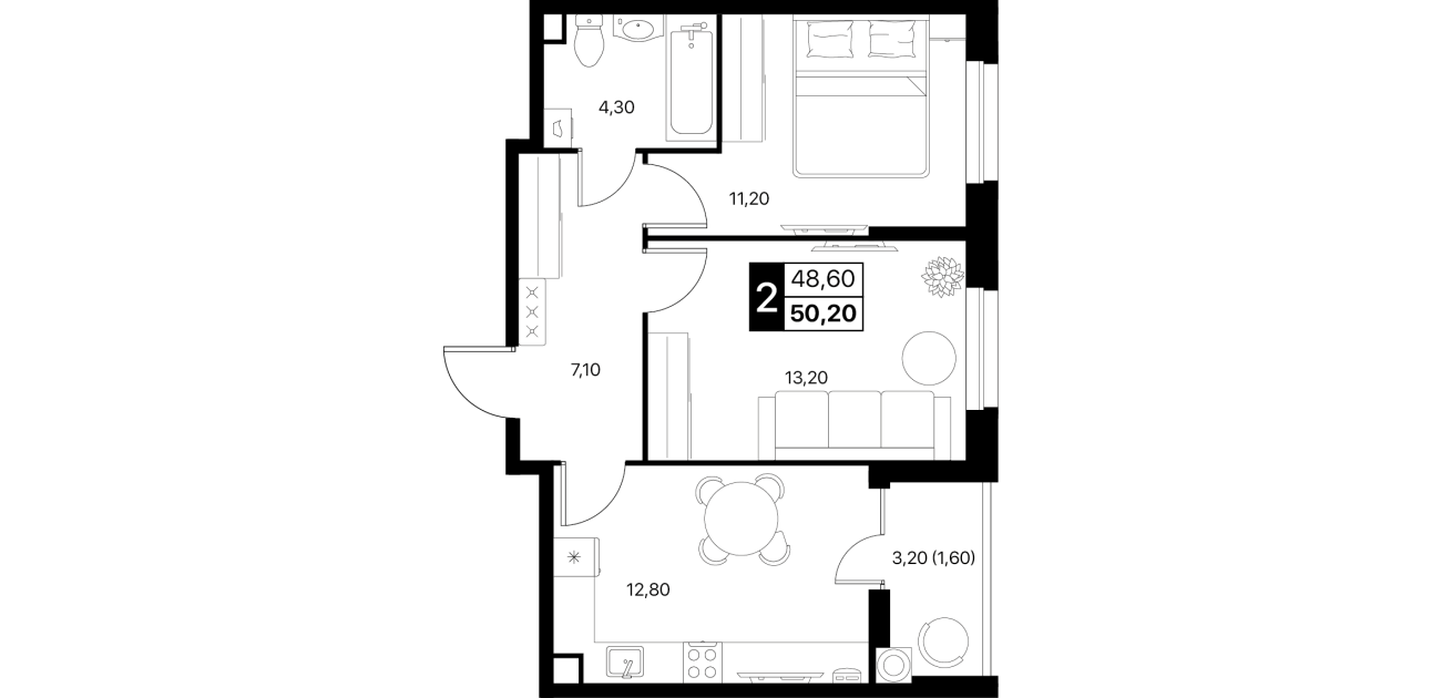 В пакет входит кухня, тюль, корпусная и мягкая мебель, сплит-системы и вся необходимая бытовая техника.