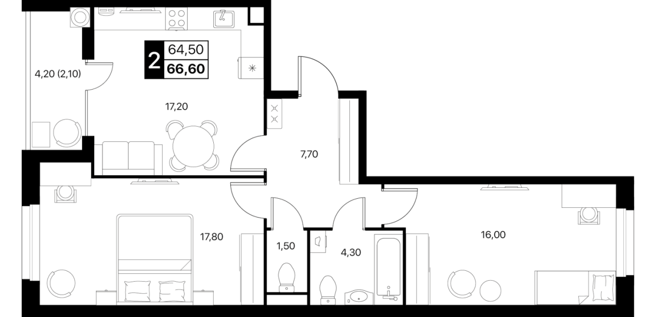 В пакет входит кухня, тюль, корпусная и мягкая мебель, сплит-системы и вся необходимая бытовая техника.
