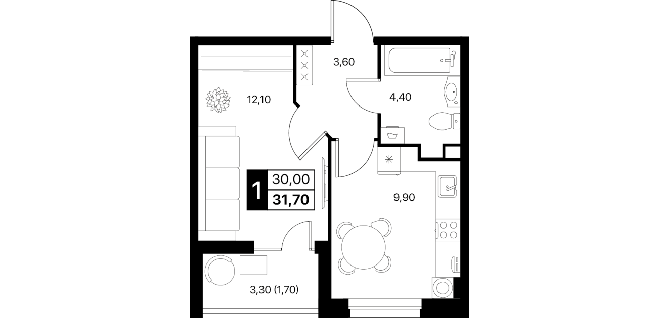В пакет входит кухня, тюль, корпусная и мягкая мебель, сплит-системы и вся необходимая бытовая техника.