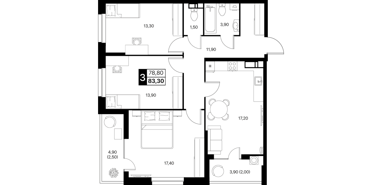 В пакет входит кухня, тюль, корпусная и мягкая мебель, сплит-системы и вся необходимая бытовая техника