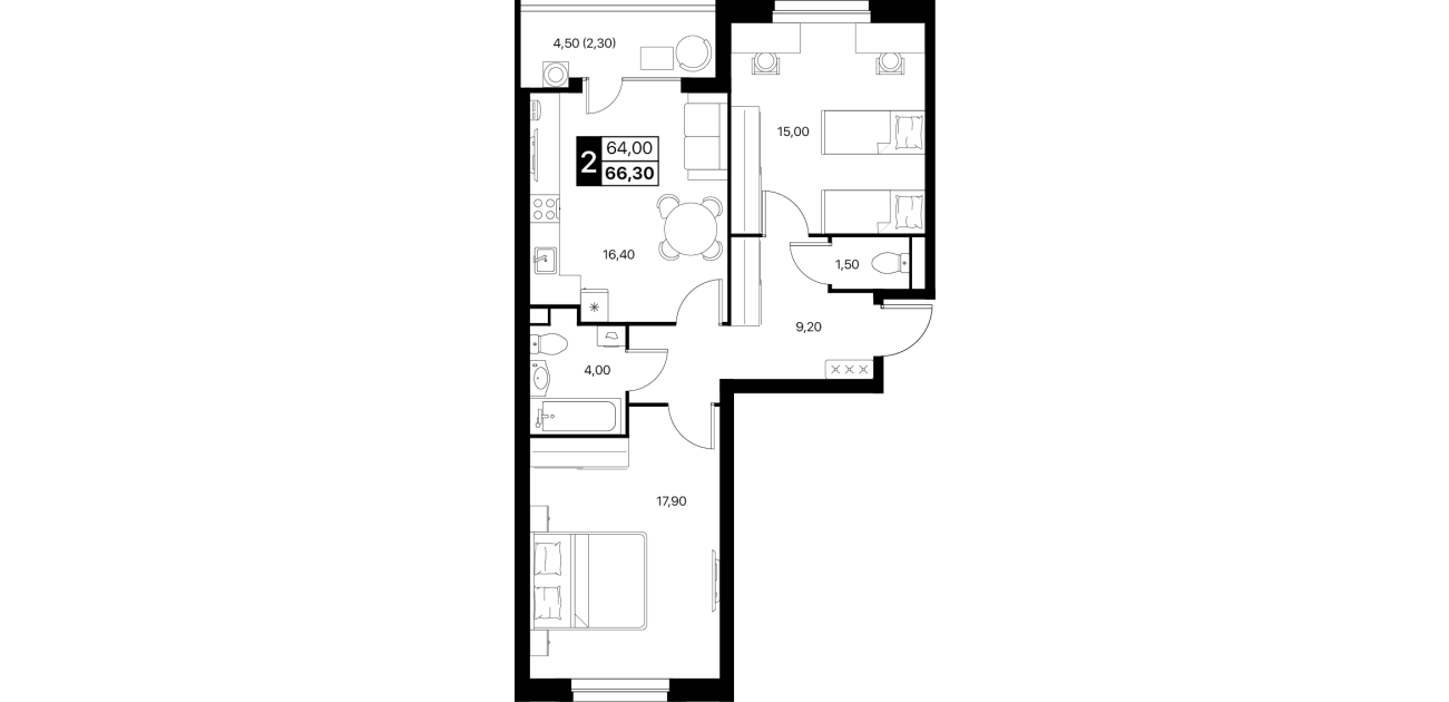 В пакет входит кухня, тюль, корпусная и мягкая мебель, сплит-системы и вся необходимая бытовая техника.