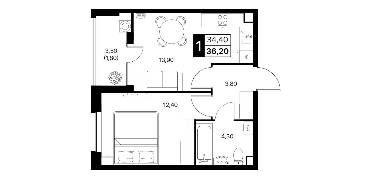 1-комнатная квартира: 36,2 м²