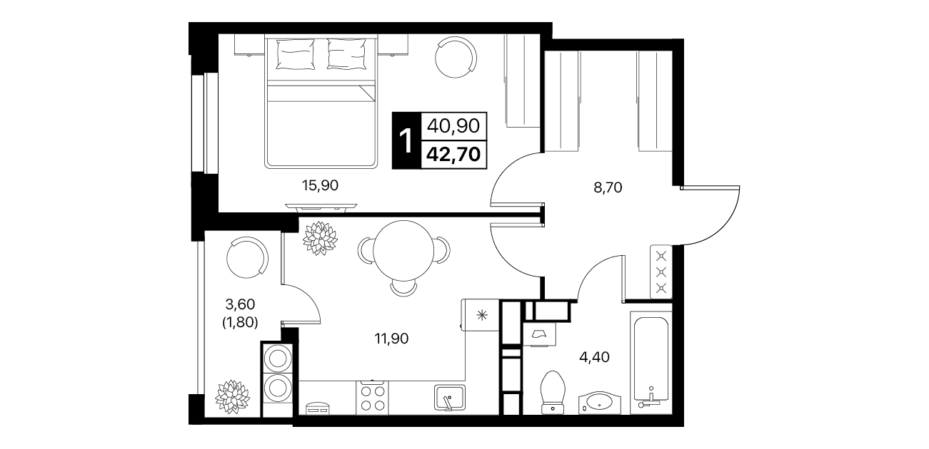 В пакет входит кухня, тюль, корпусная и мягкая мебель, сплит-системы и вся необходимая бытовая техника.