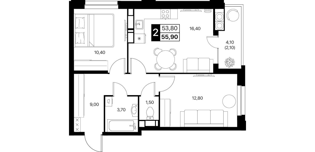 В пакет входит кухня, тюль, корпусная и мягкая мебель, сплит-системы и вся необходимая бытовая техника.