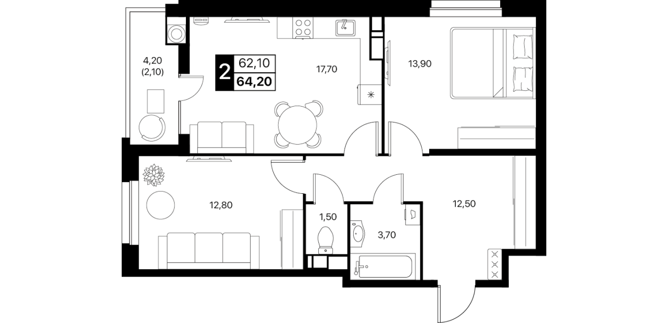 2-комнатная квартира: 64,2 м²