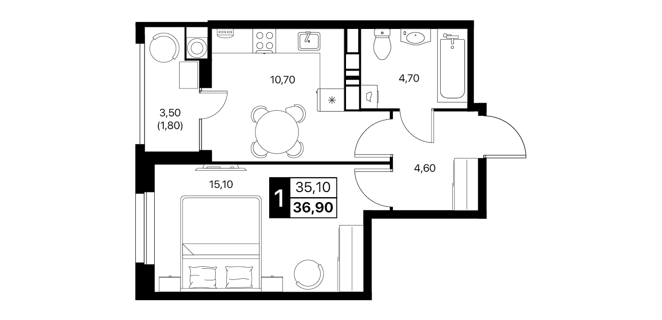 В пакет входит кухня, тюль, корпусная и мягкая мебель, сплит-системы и вся необходимая бытовая техника.