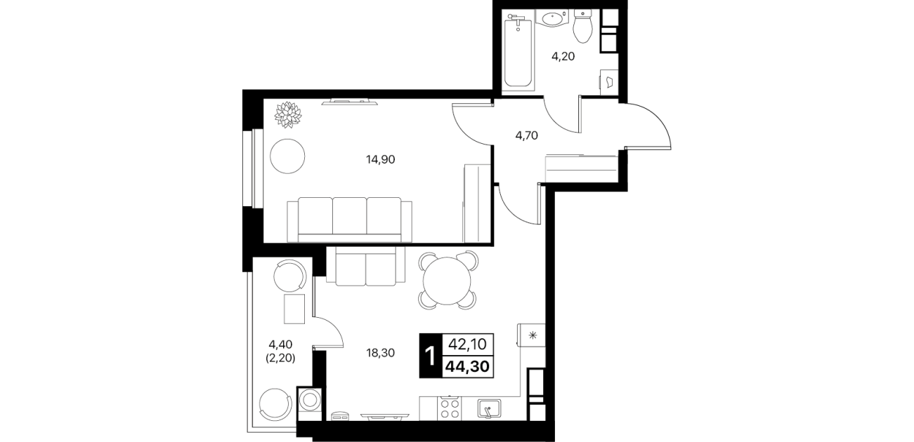 В пакет входит кухня, тюль, корпусная и мягкая мебель, сплит-системы и вся необходимая бытовая техника.
