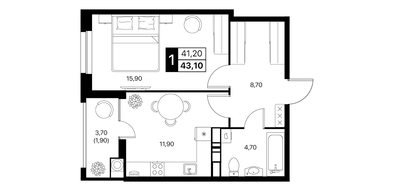 В пакет входит кухня, тюль, корпусная и мягкая мебель, сплит-системы и вся необходимая бытовая техника.