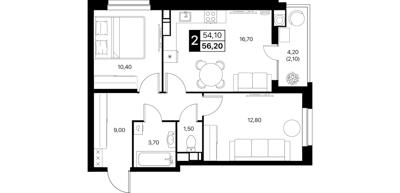 В пакет входит кухня, тюль, корпусная и мягкая мебель, сплит-системы и вся необходимая бытовая техника.