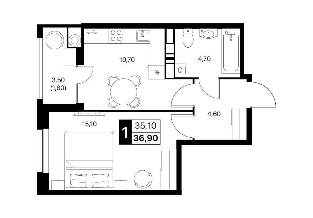 В пакет входит кухня, тюль, корпусная и мягкая мебель, сплит-системы и вся необходимая бытовая техника.
