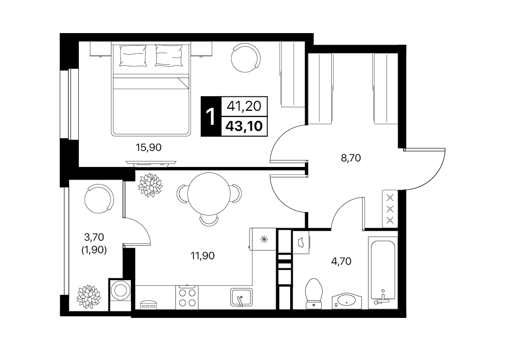 В пакет входит кухня, тюль, корпусная и мягкая мебель, сплит-системы и вся необходимая бытовая техника.