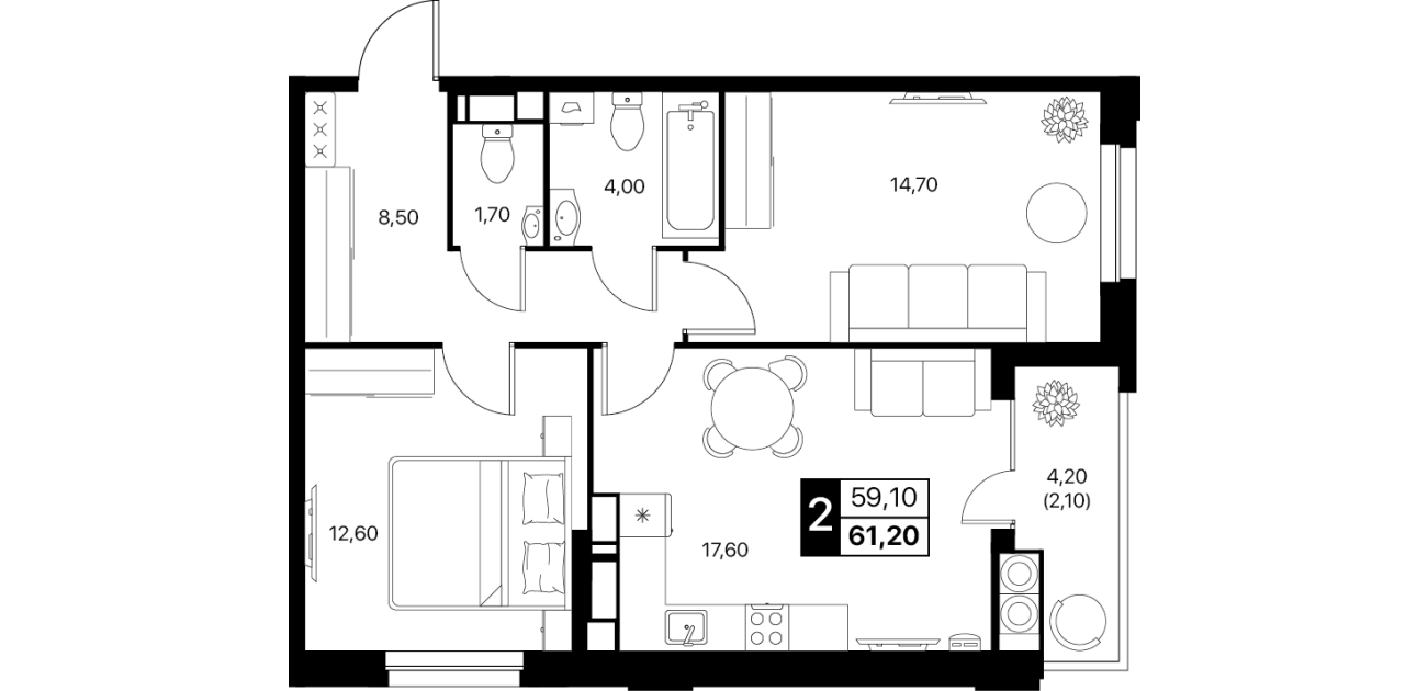 В пакет входит кухня, тюль, корпусная и мягкая мебель, сплит-системы и вся необходимая бытовая техника.