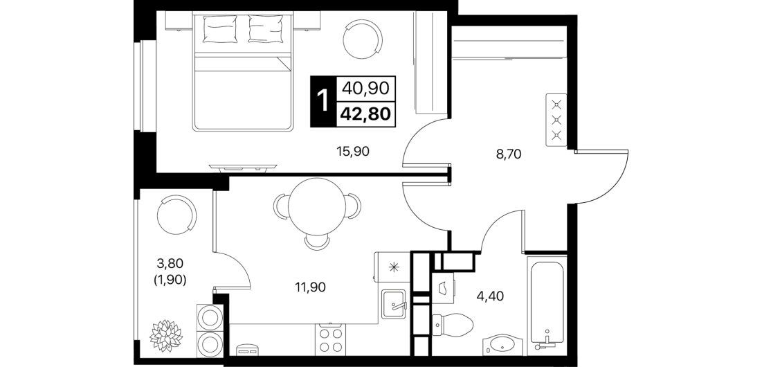 В пакет входит кухня, тюль, корпусная и мягкая мебель, сплит-системы и вся необходимая бытовая техника.