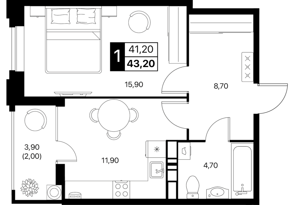 Чистый лист для вашего дизайна. Потолки покрашены, стены выровнены под обои, на полу аккуратный ковролин; электрика разведена, установлен базовый свет. Санузел собран (ванна, унитаз, раковина) — въезжайте и доводите интерьер без пыли и черновых работ.