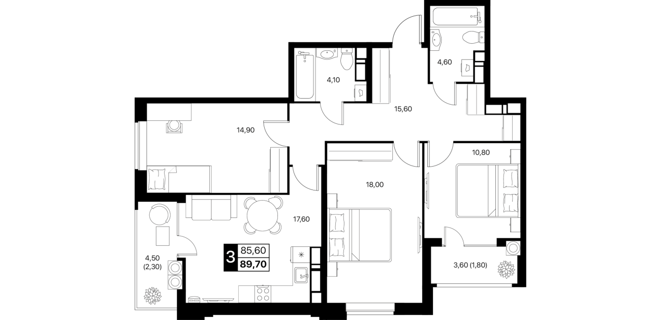 В пакет входит кухня, тюль, корпусная и мягкая мебель, сплит-системы и вся необходимая бытовая техника