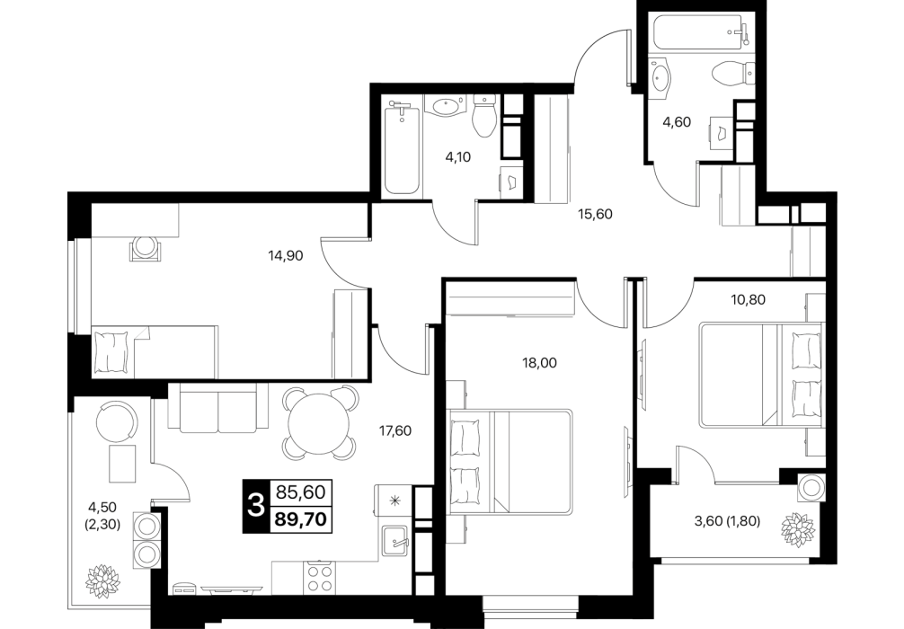 В пакет входит кухня, тюль, корпусная и мягкая мебель, сплит-системы и вся необходимая бытовая техника.