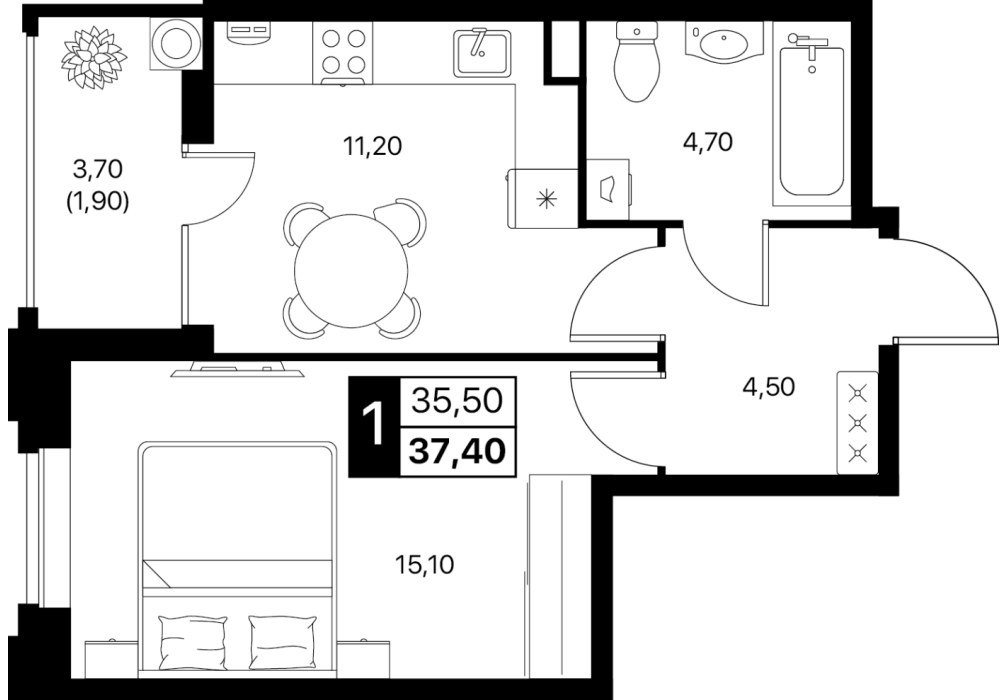 Чистый лист для вашего дизайна. Потолки покрашены, стены выровнены под обои, на полу аккуратный ковролин; электрика разведена, установлен базовый свет. Санузел собран (ванна, унитаз, раковина) — въезжайте и доводите интерьер без пыли и черновых работ.