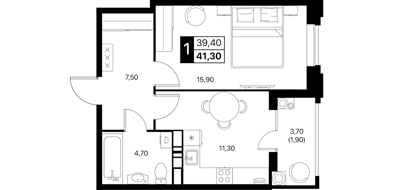 Чистый лист для вашего дизайна. Потолки покрашены, стены выровнены под обои, на полу аккуратный ковролин; электрика разведена, установлен базовый свет. Санузел собран (ванна, унитаз, раковина) — въезжайте и доводите интерьер без пыли и черновых работ.