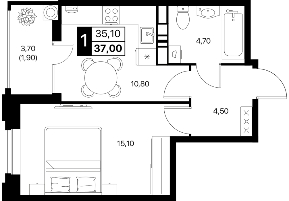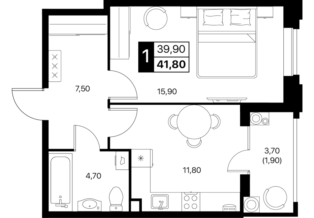 Чистый лист для вашего дизайна. Потолки покрашены, стены выровнены под обои, на полу аккуратный ковролин; электрика разведена, установлен базовый свет. Санузел собран (ванна, унитаз, раковина) — въезжайте и доводите интерьер без пыли и черновых работ.
