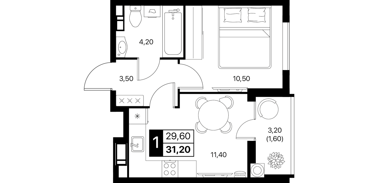 Чистый лист для вашего дизайна. Потолки покрашены, стены выровнены под обои, на полу аккуратный ковролин; электрика разведена, установлен базовый свет. Санузел собран (ванна, унитаз, раковина) — въезжайте и доводите интерьер без пыли и черновых работ.