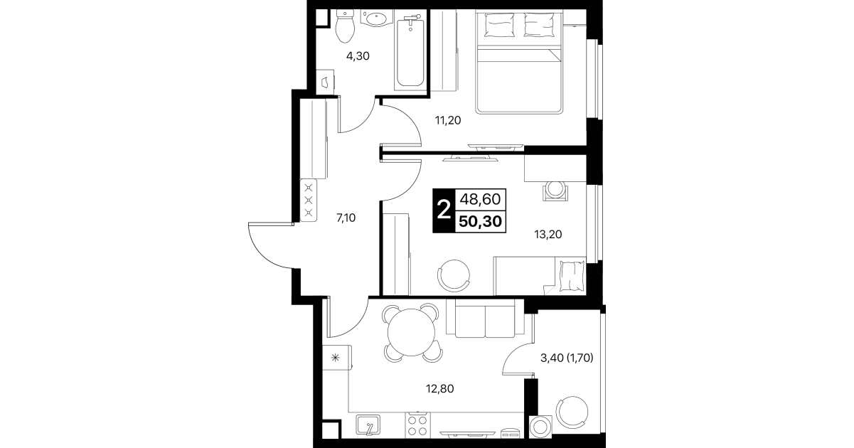 В пакет входит кухня, тюль, корпусная и мягкая мебель, сплит-системы и вся необходимая бытовая техника.