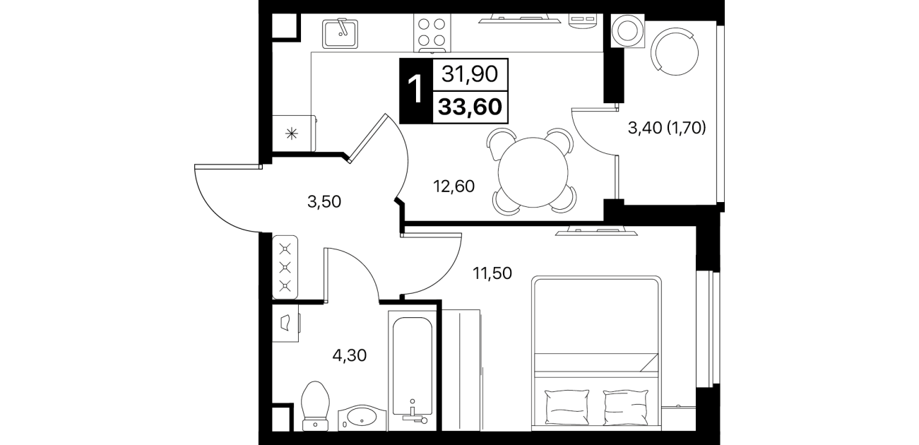 Чистый лист для вашего дизайна. Потолки покрашены, стены выровнены под обои, на полу аккуратный ковролин; электрика разведена, установлен базовый свет. Санузел собран (ванна, унитаз, раковина) — въезжайте и доводите интерьер без пыли и черновых работ.