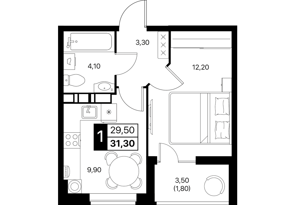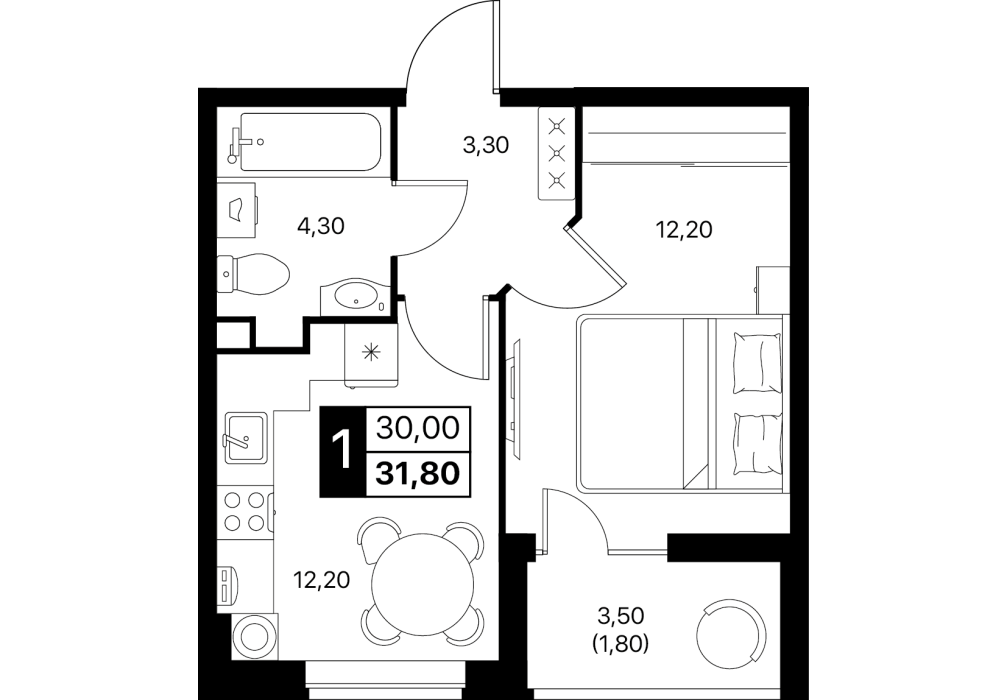 Чистый лист для вашего дизайна. Потолки покрашены, стены выровнены под обои, на полу аккуратный ковролин; электрика разведена, установлен базовый свет. Санузел собран (ванна, унитаз, раковина) — въезжайте и доводите интерьер без пыли и черновых работ.