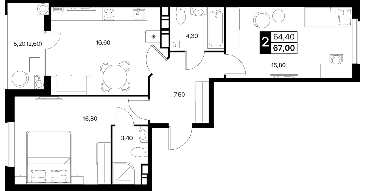 В пакет входит кухня, тюль, корпусная и мягкая мебель, сплит-системы и вся необходимая бытовая техника.