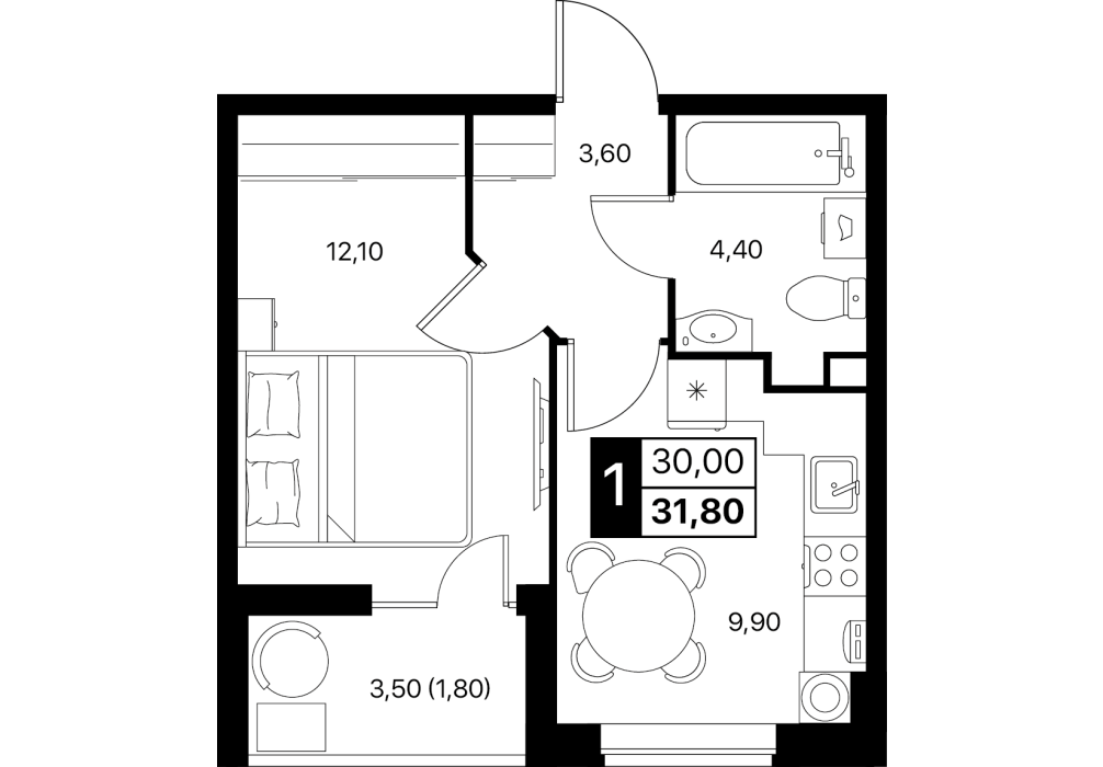Чистый лист для вашего дизайна. Потолки покрашены, стены выровнены под обои, на полу аккуратный ковролин; электрика разведена, установлен базовый свет. Санузел собран (ванна, унитаз, раковина) — въезжайте и доводите интерьер без пыли и черновых работ.