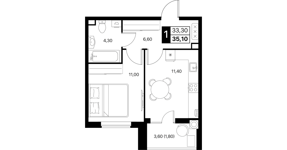 Чистый лист для вашего дизайна. Потолки покрашены, стены выровнены под обои, на полу аккуратный ковролин; электрика разведена, установлен базовый свет. Санузел собран (ванна, унитаз, раковина) — въезжайте и доводите интерьер без пыли и черновых работ.