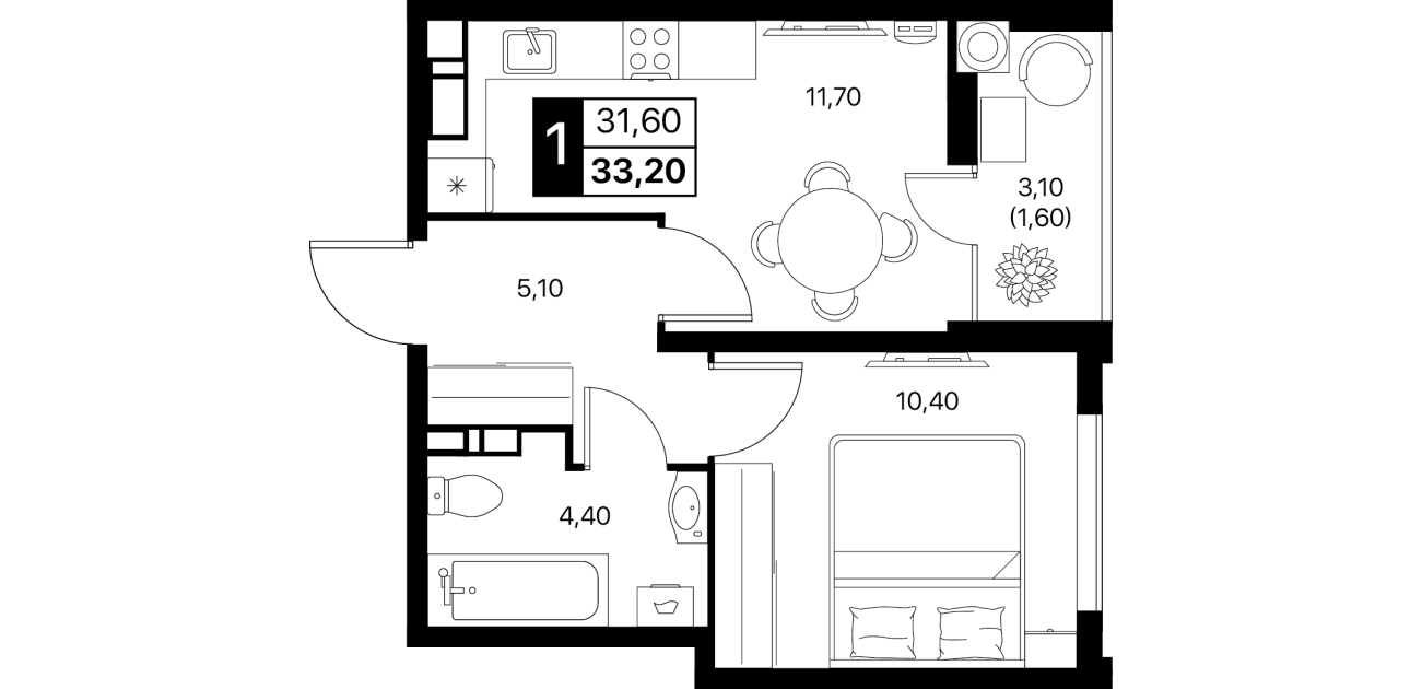Чистый лист для вашего дизайна. Потолки покрашены, стены выровнены под обои, на полу аккуратный ковролин; электрика разведена, установлен базовый свет. Санузел собран (ванна, унитаз, раковина) — въезжайте и доводите интерьер без пыли и черновых работ.