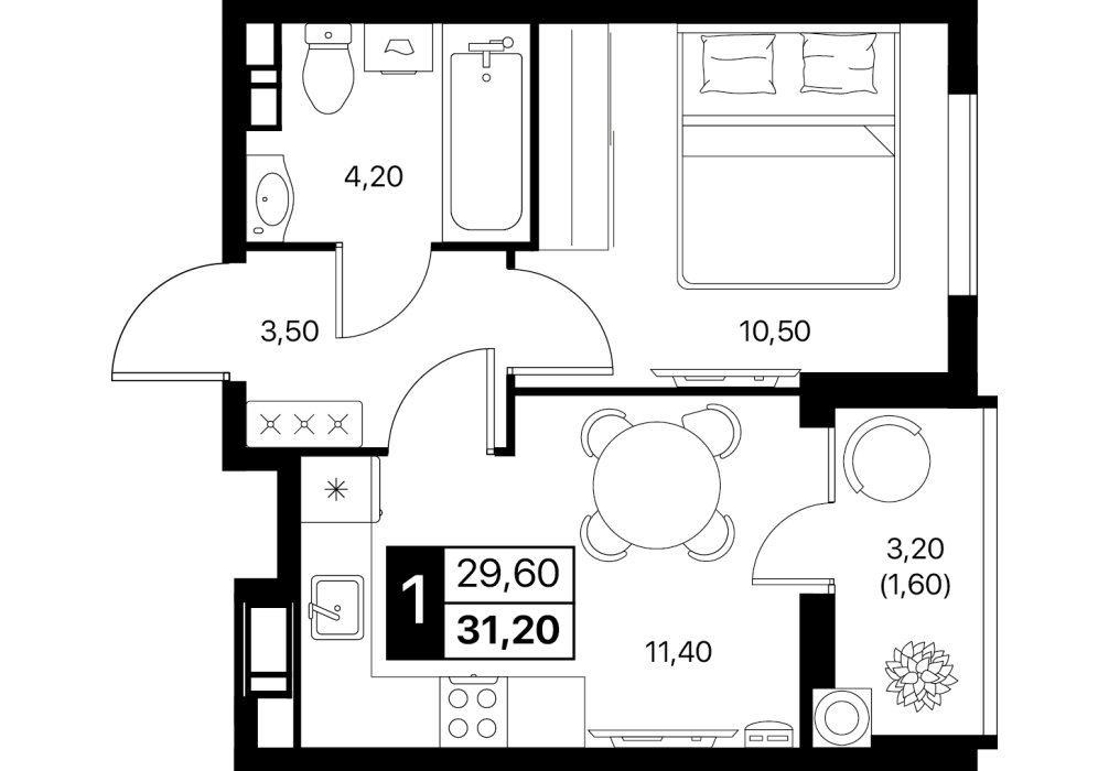 Чистый лист для вашего дизайна. Потолки покрашены, стены выровнены под обои, на полу аккуратный ковролин; электрика разведена, установлен базовый свет. Санузел собран (ванна, унитаз, раковина) — въезжайте и доводите интерьер без пыли и черновых работ.