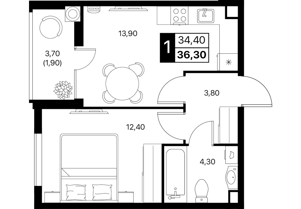Чистый лист для вашего дизайна. Потолки покрашены, стены выровнены под обои, на полу аккуратный ковролин; электрика разведена, установлен базовый свет. Санузел собран (ванна, унитаз, раковина) — въезжайте и доводите интерьер без пыли и черновых работ.