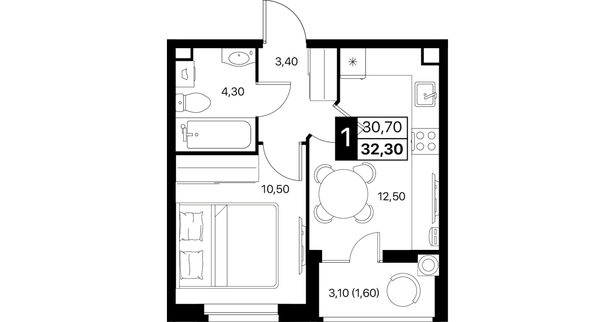 В пакет входит кухня, тюль, корпусная и мягкая мебель, сплит-системы и вся необходимая бытовая техника.