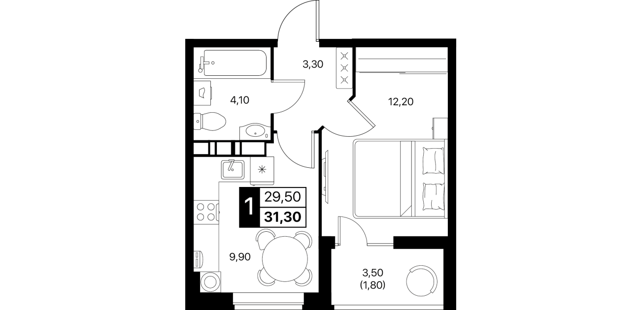 Чистый лист для вашего дизайна. Потолки покрашены, стены выровнены под обои, на полу аккуратный ковролин; электрика разведена, установлен базовый свет. Санузел собран (ванна, унитаз, раковина) — въезжайте и доводите интерьер без пыли и черновых работ.