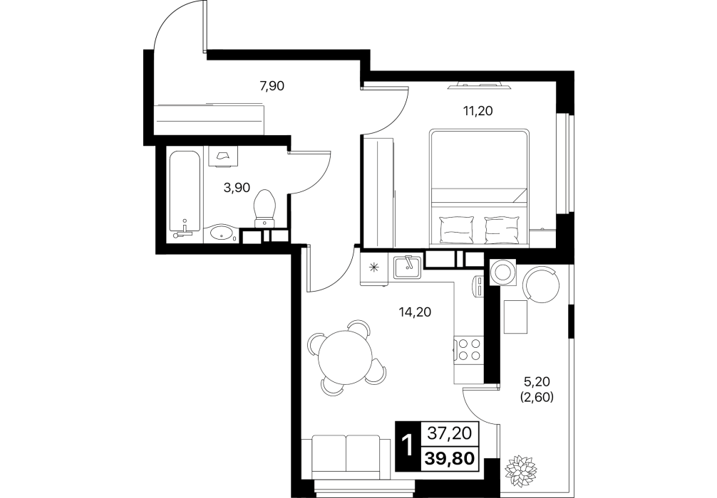 Чистый лист для вашего дизайна. Потолки покрашены, стены выровнены под обои, на полу аккуратный ковролин; электрика разведена, установлен базовый свет. Санузел собран (ванна, унитаз, раковина) — въезжайте и доводите интерьер без пыли и черновых работ.